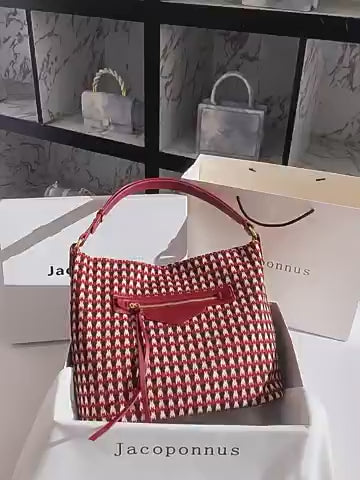 Bolso grande estilo hobo con diseño estampado en tonos rojos y beige que aporta un carácter distintivo. Asa superior amplia y correa larga removible para mayor comodidad. Herrajes en tono dorado que completan su acabado elegante. Ideal para uso diario o de ocasión.